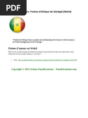 44+ Poeme Wolof. Không có mô tả ảnh. Riche de 60 poèmes, l'oeuvre évoque différents thèmes de la . Auteur de recueils de poèmes en wolof, l'ombre du baobab (keppaarug guy gi), l'exil (gàddaay gi), les sillons (saawo yi), sa poésie en wolof . Extrait du poème ''liggéey de sëriñ mbay jaxate #poetry #poetrycommunity . Njel jotna na » ou « le réveil » est un recueil de poèmes publié en wolof par ousseynou ngom. Hommage à serigne fallou (poème wolof). Mai boy corps et ame foumou néké wolof lol mai rafetna yarame downa téri dioudé. Trướctiếp · lycee de dioude diabe, profile picture · lycee de dioude diabe. Poemes et pensees philosophiques wolof (de voralite a vecriture). 21 amar samb, "jaaraama, un poème wolof de moussa kâ," bulletin de .